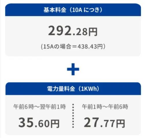 | ナイトタイム 平日23時~翌日6時/ 休日扱22時~翌日8時 | 22.98円/kWh | 18.88円/kWh |